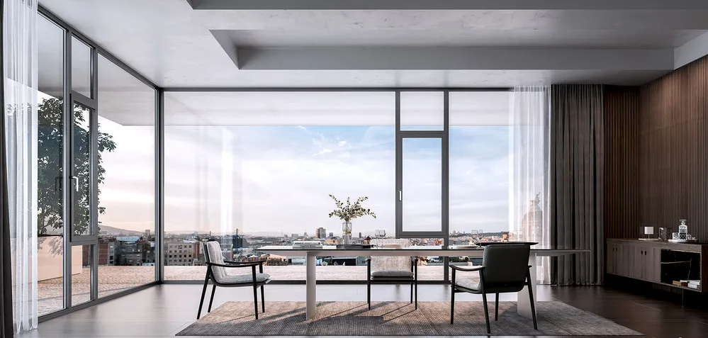 落地窗被视为建筑的灵魂,主要是因为它在建筑设计中具有独特的魅力和功能。超大全景落地窗也可以感受到清风拂面的浪漫气息。在清晨或傍晚时分,当太阳缓缓升起或落下时,微风吹拂着窗帘,带来阵阵凉爽。这时候,静静地欣赏着日出或日落的美景,感受大自然的魅力。打开生活的全新视角,这样的落地窗很难不爱!
